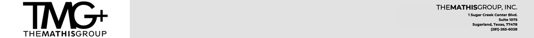 1 Sugar Creek Center Blvd., Suite 1075, Sugar Land, Texas 77478Phone: (281) 265-6028Fax: (281) 265-6825TMG+@mathisgroup.com